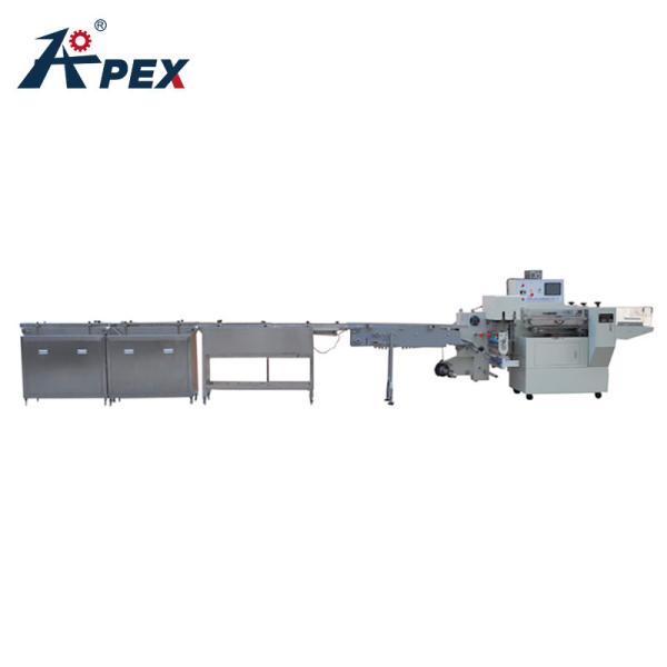 Feature | 1,the maximum speed can reach 500 bags per minute(the real packing speed is based on the package material,packaging length and size) 2,The entire producction process can realize sutomatic detection, lining up,pulling distance ,feeding and packaging. 3,This feeding and packing line's outside dimension and technical parameter is designed individually as per customer's requirement. |